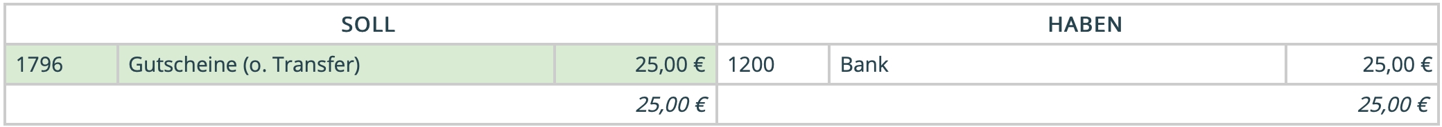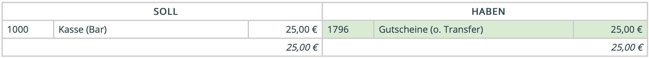 Ein Kunde kauf bei Euch im Geschäft einen Netzwerkgutschein im Wert von 25 EUR.