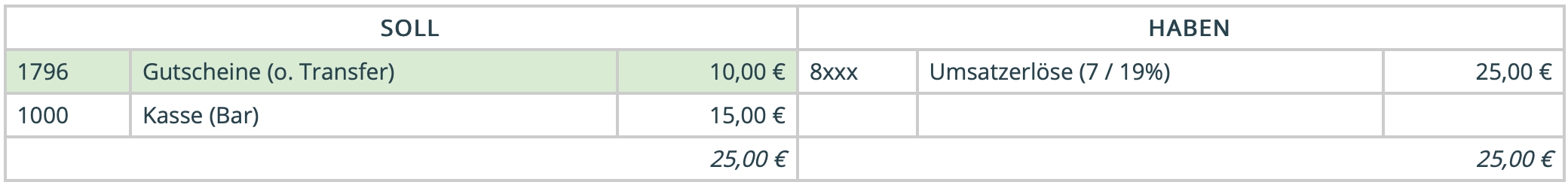 Ein Kunde kommt mit einem 10 EUR Netzwerkgutschein (Stadtgutschein) in Euer Geschäft und kauft Waren im Wert von 25 EUR. Er bezahlt 10 EUR mit dem Netzwerkgutschein - 15 EUR zahlt er in bar.